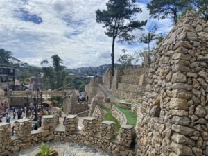 ところで、これまでに訪れた場所を紹介したいと思います。私はさまざまな観光地に出会い、いろいろな食べ物や多様な文化を体験しました。たとえば、バギオでは伝統的なダンスがありました。それを見て、とても感動しました。また、伝統的な家屋もあり、とても素晴らしかったです。さらに、イゴロット・ストーン・キングダムにも行き、そこからバギオ市のきれいな景色を眺めることができました。